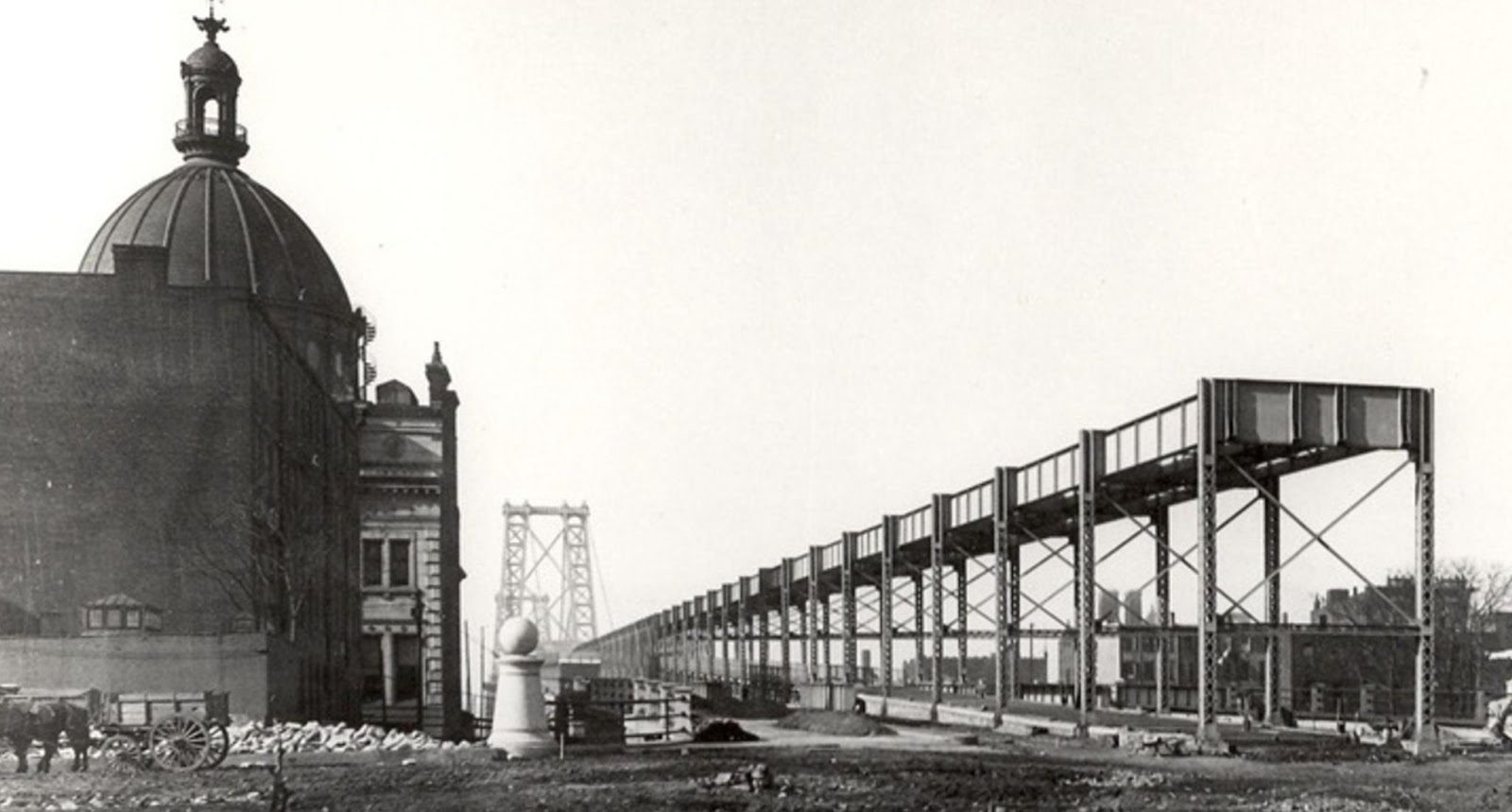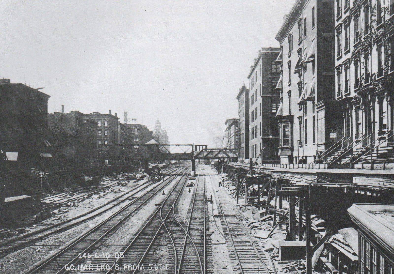 These ramps were built under the Park Row terminal, but their rails were never installed. It was intended for the easternmost tracks to link to the proposed subway on William Street. In turn, following a complex sequence of crossings, the four tracks proceeded north to Canal Street and ultimately to Williamsburg Bridge at the northern end. The two easternmost tracks also had branches that crossed the Manhattan Bridge.