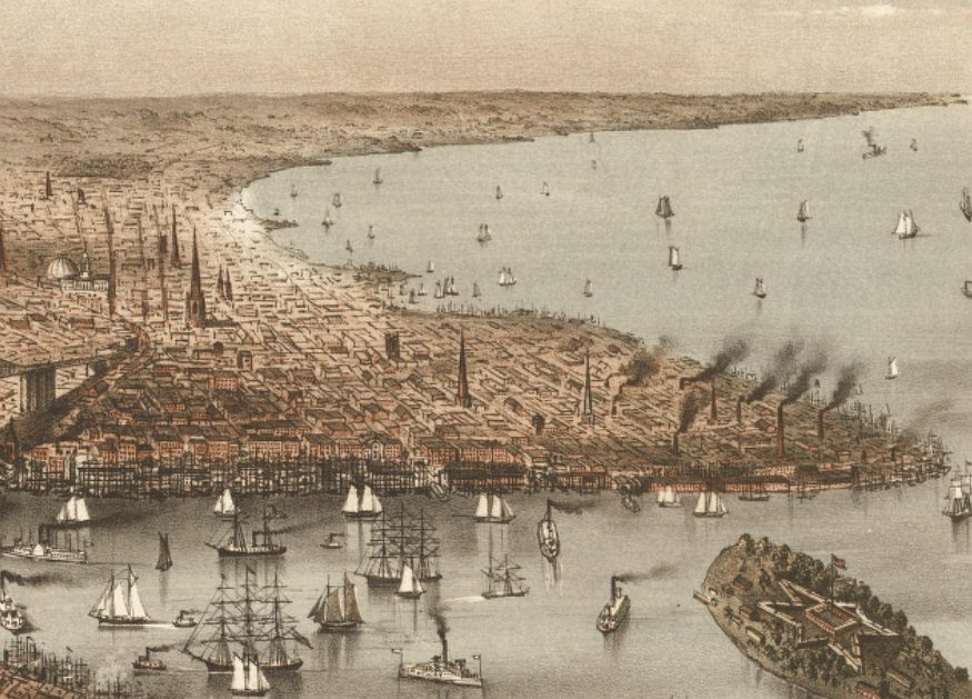 Несмотря на то, что Манхеттен и Бруклин были привлекательны в мирное время, они были чрезвычайно уязвимы и ценны во время войны. Так же во время войны за Независимость. Форт Дефианс Ред-Гука занимал важное место во время битвы за Бруклин, первой большой битвы после подписания Декларации независимости в июле. В конце августа 1776 года британцы начали трехстороннюю атаку на Бруклин, преследуя цель уничтожения Континентальной армии под командованием Вашингтона. В ответственный и уместно дерзкий момент, с молитвой «Радуйся, Мария» на устах, раздались выстрелы из форта, почти затопившие HMS «Roebuck», главный корабль Королевского флота Великобритании, который, хромая, был отправлен обратно в британскую крепость Стейтен-Айленд. К слову, уничтожить американскую армию британцам в той битве не удалось. Жорж Вашингтон спас ее, отступив, переправившись через Ист-Ривер.