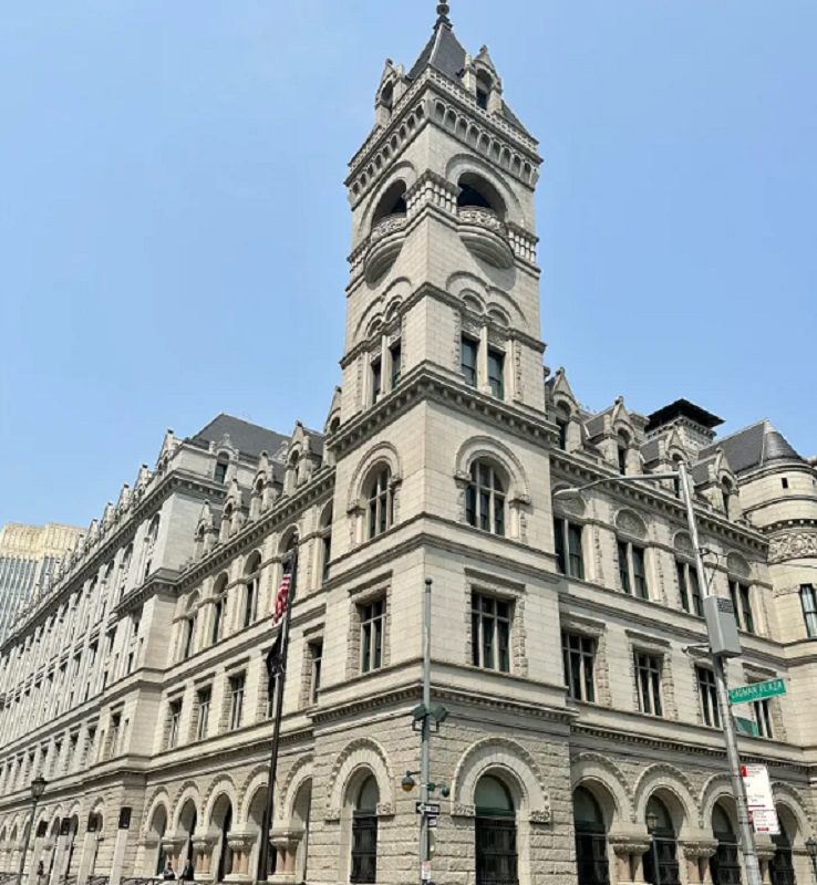 Завершений у 1848 році Brooklyn Borough Hall спочатку мав стати мерією незалежного міста Бруклін. Після консолідації з Нью-Йорком він став будівлею, де розташовувався офіс керівника боро. Ця чудова будівля є прекрасним прикладом архітектурного стилю грецького відродження з його грандіозним портиком, міцними доричними колонами та багато прикрашеним фронтоном. Його оригінальний купол був знищений пожежею в 1895 році та замінений нинішнім куполом у стилі Beaux-Arts.